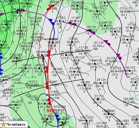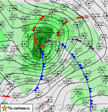 25 декабря 2023 г. над территорией Каспийского и Аральского морей образовался атмосферный вихрь, который быстро смещался на Южный Урал. При прохождении такого молодого, насыщенного влагой циклона с активными фронтальными разделами была большая вероятность возникновения опасных явлений погоды (очень сильные снегопады, гололеды, метели).