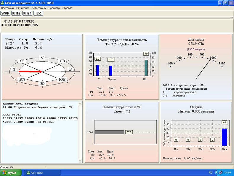 В марте этого года в рамках Проекта модернизации и технического перевооружения организаций и учреждений Росгидромета в ФГУ «Челябинский ЦГМС» поступило 18 метеорологических специализированных комплексов (АМК) с новым программным обеспечением, энергооборудованием и системой связи. Такое полномасштабное переоснащение государственной метеорологической сети на территории всей России, а не отдельных территориальных Управлений или Центров как это бывало прежде, осуществлено впервые. Перед специалистами ФГУ «Челябинский ЦГМС», прошедшими обучение на специальных курсах, была поставлена задача: установить в текущем году метеокомплексы на 8 станциях и обучить сотрудников этих метеостанций работе с новым оборудованием. Для осуществления модернизации метеорологических наблюдений на каждой метеостанции необходимо было выполнить большой объем вспомогательных работ: от простейших земляных по прокладке траншей для кабеля и копке ям под мачту - до замены энергоснабжения метеостанций, заземления контура зданий, а в отдельных случаях переноса метеоплощадки и приобретение нового служебного помещения. С запланированным в этом году объемом работ по модернизации ФГУ «Челябинский ЦГМС» успешно справился.